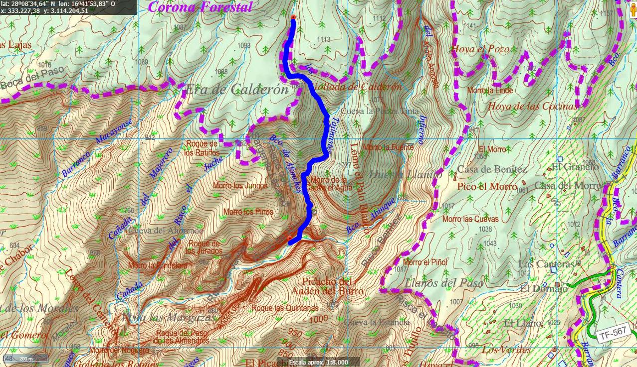 Inic io Cartográfico. Inicio cauce del Barranco de Calderón. Mapas GrafCan.